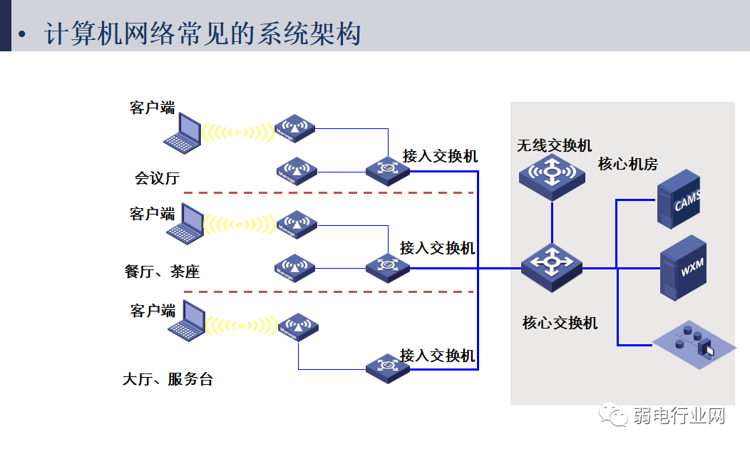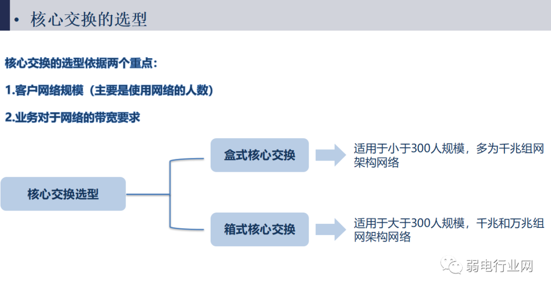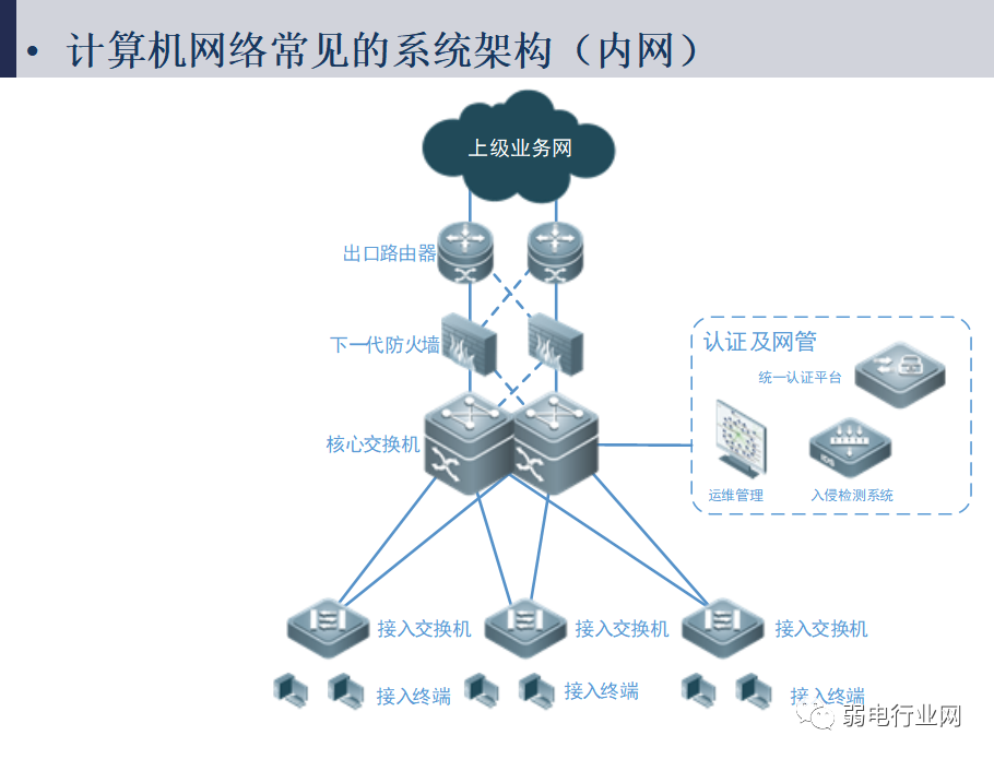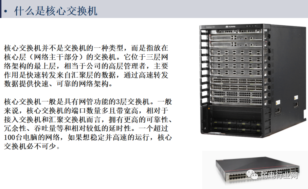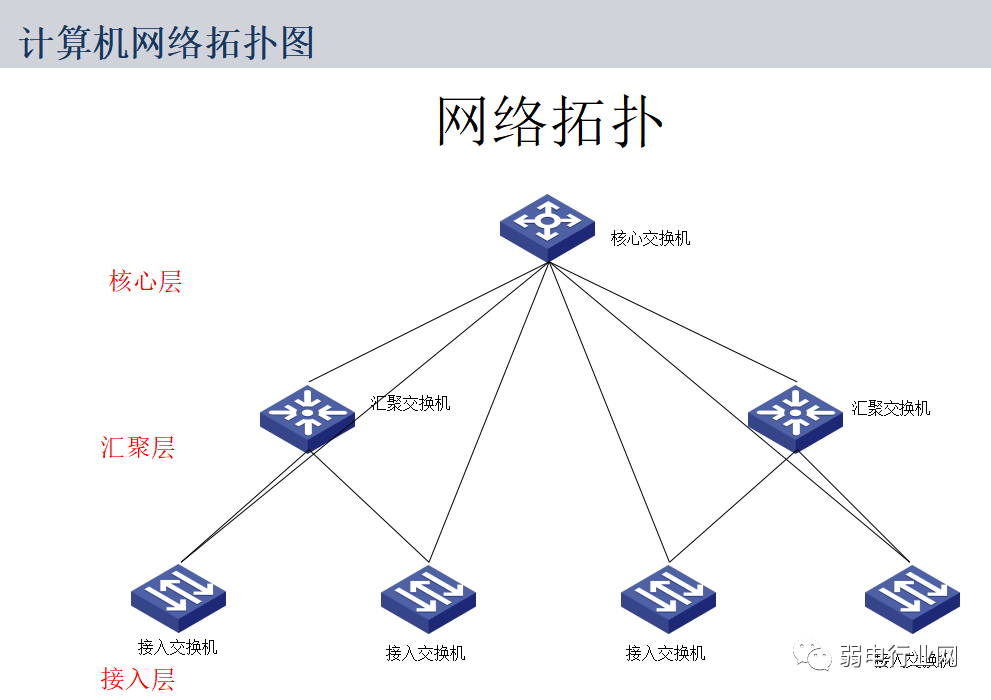 网络构成方式:接入层交换机、汇聚层交换机和核心层交换机